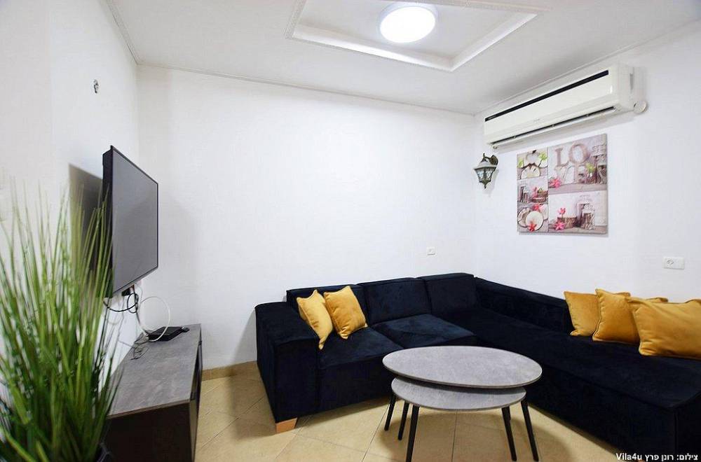 סלון מרווח עם מערכות ישיבה וטלוויזיה עם חיבור לכבלים