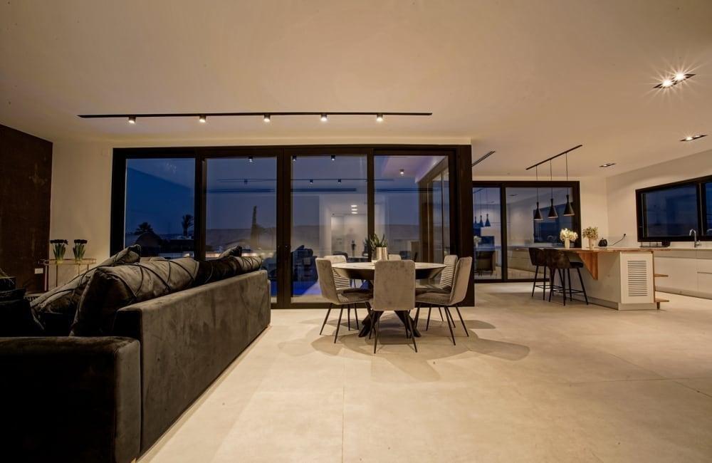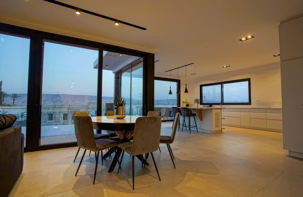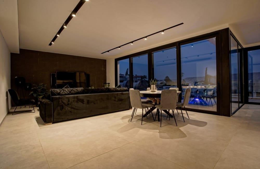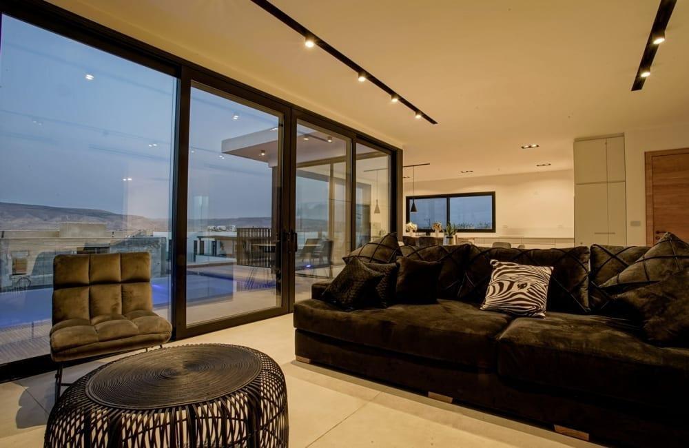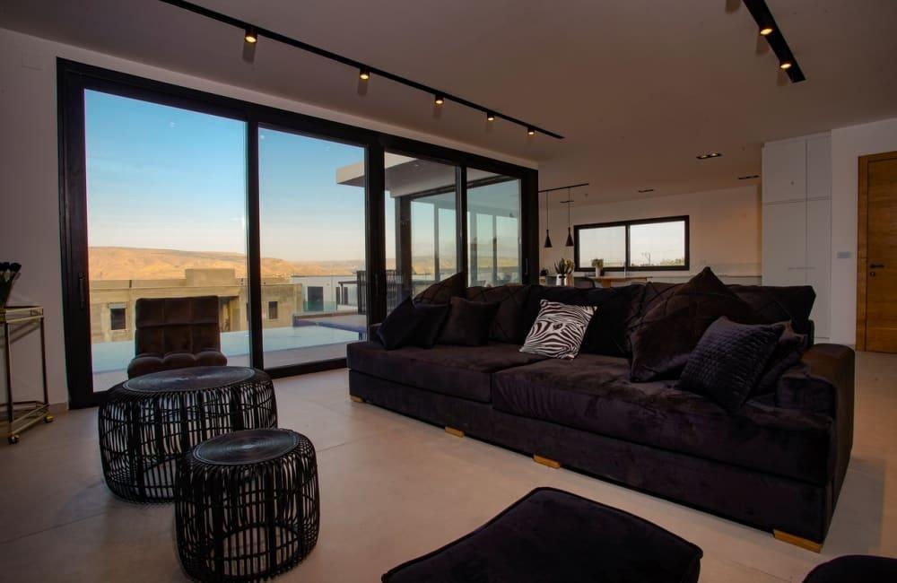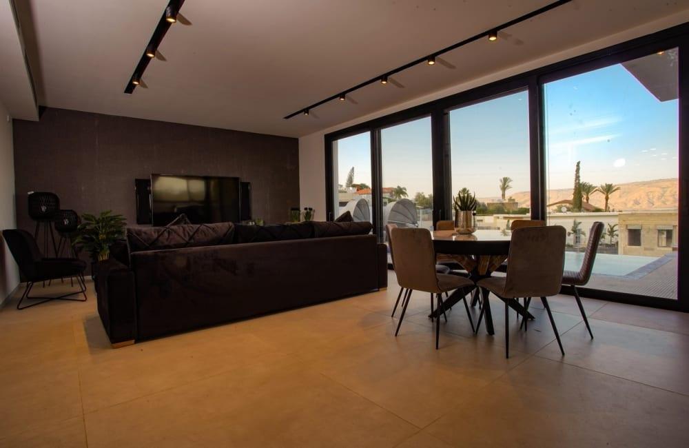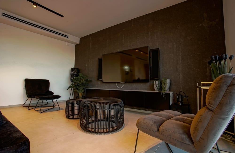 סלון גדול ומרווח עם מסך שטוח בגודל 75 אינץ וחיבור ל HOT ונטפליקס.
