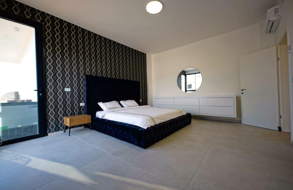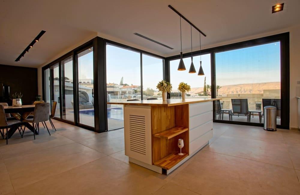 יחידת אירוח 3+4: מיטה זוגית, 2 מיטות יחיד, לול לתינוקות, חדר רחצה פרטי, נוף לבריכה ולחצר