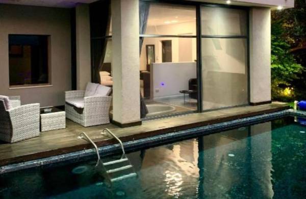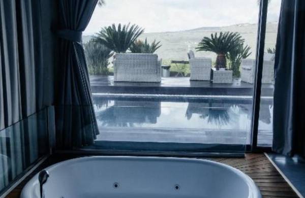 ביציאה מכל סוויטה קיימת בריכה פרטית (מחוממת בחורף), מדשאה ירוקה, ריהוט גן ופינת ברביקיו מול הנוף.